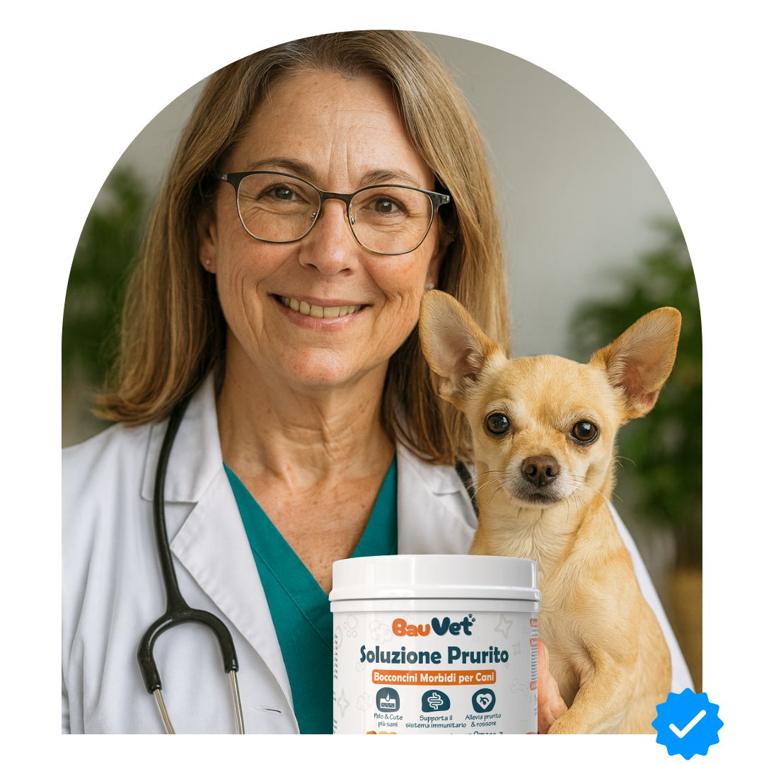 "Il mio cane si grattava di continuo e aveva la pelle arrossata. Con la Soluzione Prurito BauVet in poche settimane la situazione è migliorata: meno prurito, pelle più sana e pelo di nuovo lucido. 👍 "
